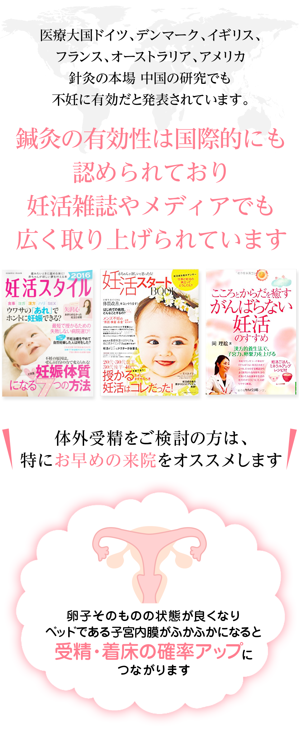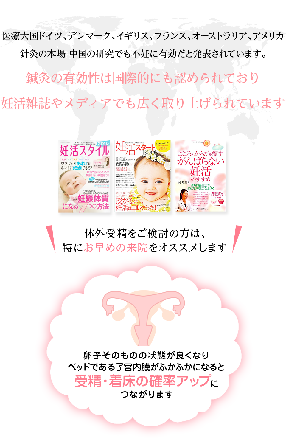 特に不妊症や美容分野での施術を得意としておられ、これまで不妊症で悩まれた多くの方がご懐妊・ご出産されています。