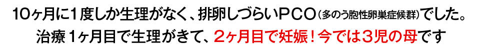 18歳で初経、10ヶ月に1回の月経、PCO(多のう胞性卵巣症候群)でした。