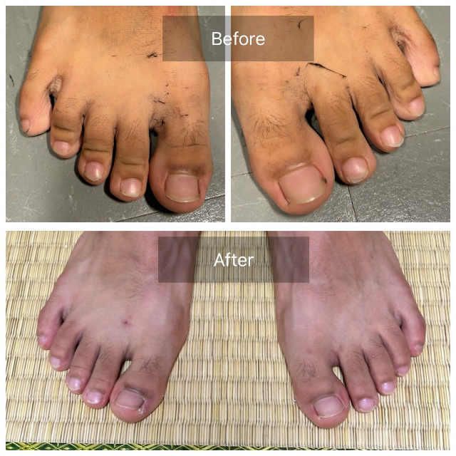 足の指がすごく変わります。全体が伸びてぺたっと付く様に!